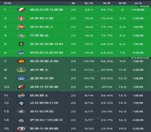 北京时间12月6日,今日的NBA常规赛结束了所有比赛,我们一起看看西部的最新排名变动!
